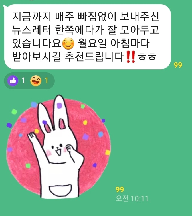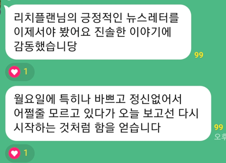 "이번 주 뉴스레터도 너무 좋네요! 책 내셔도 되겠어요."